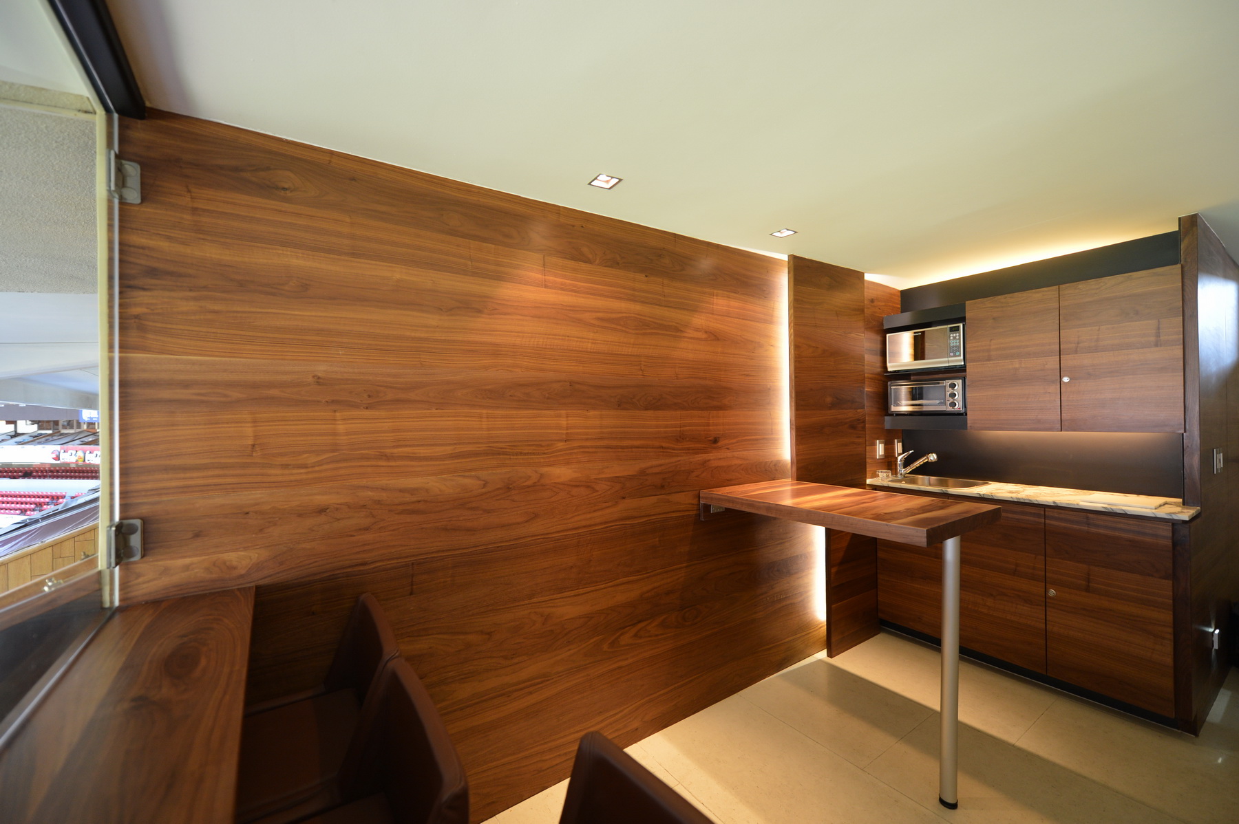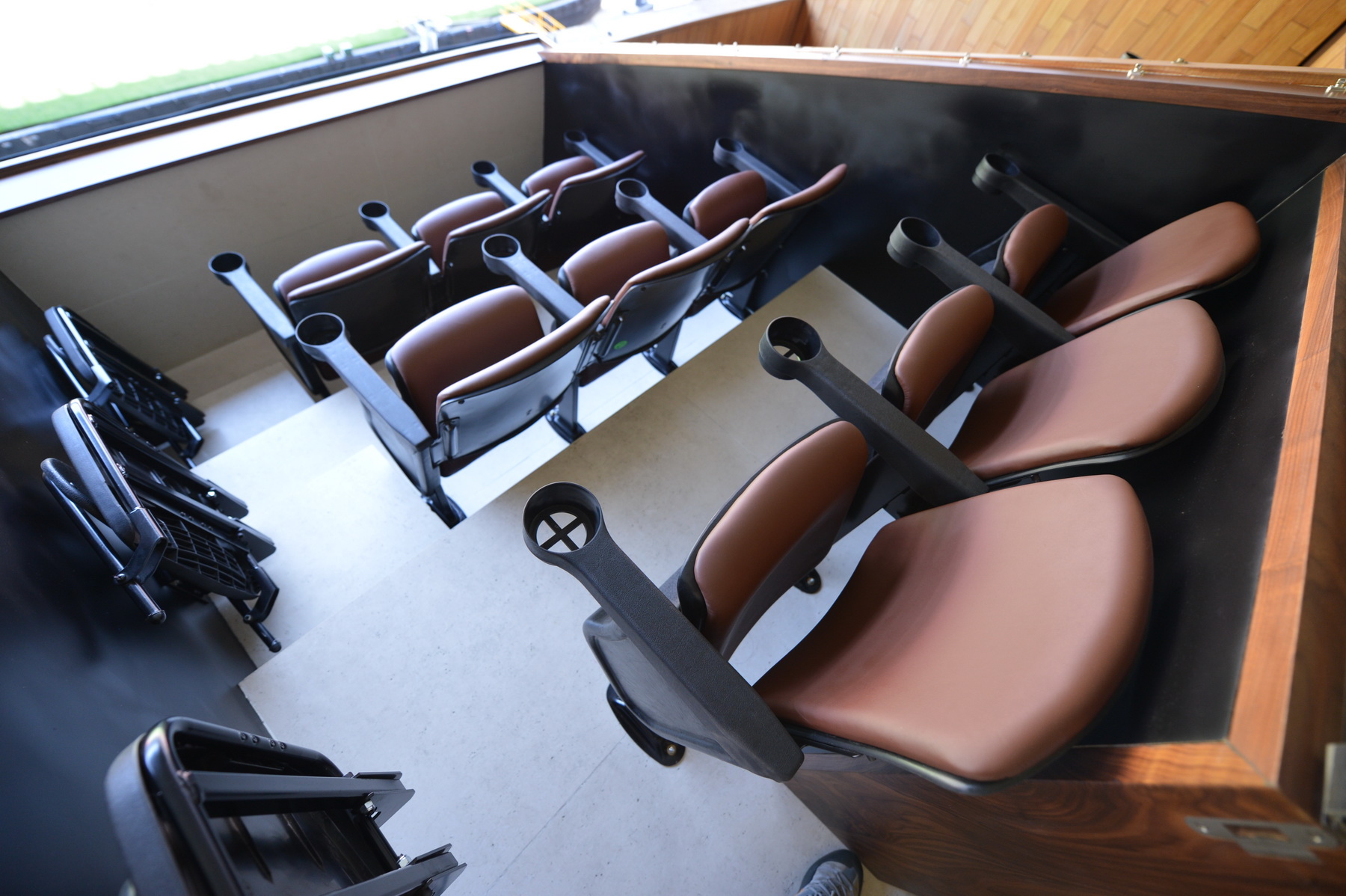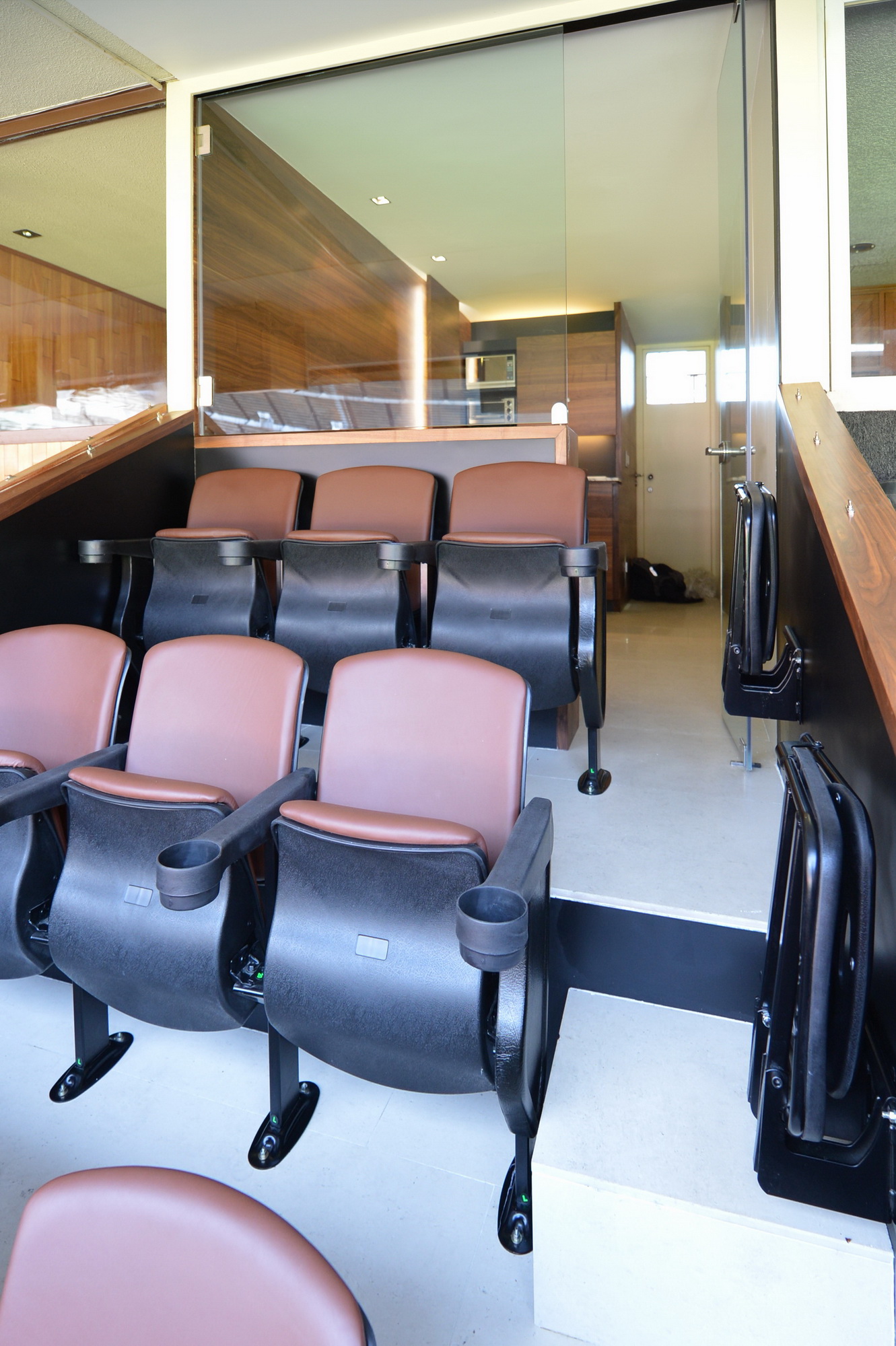 Palco muy estrecho. El objetivo era maximizar el espacio quitando los recubrimientos anteriores y muros anteriores supliéndolos con materiales mas resistentes pero delgados para tener el máximo ocupado por usuarios y no por construcciones.