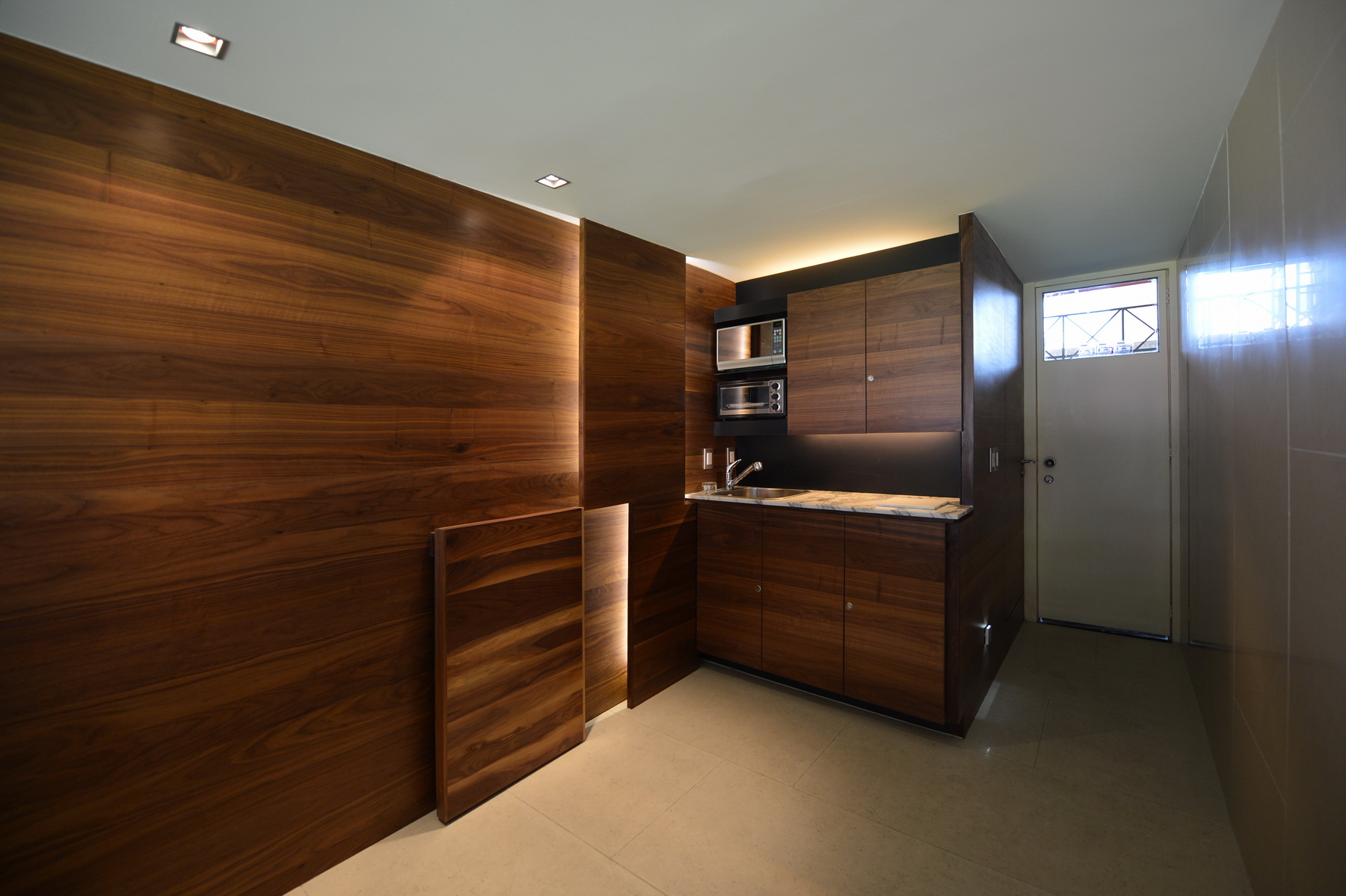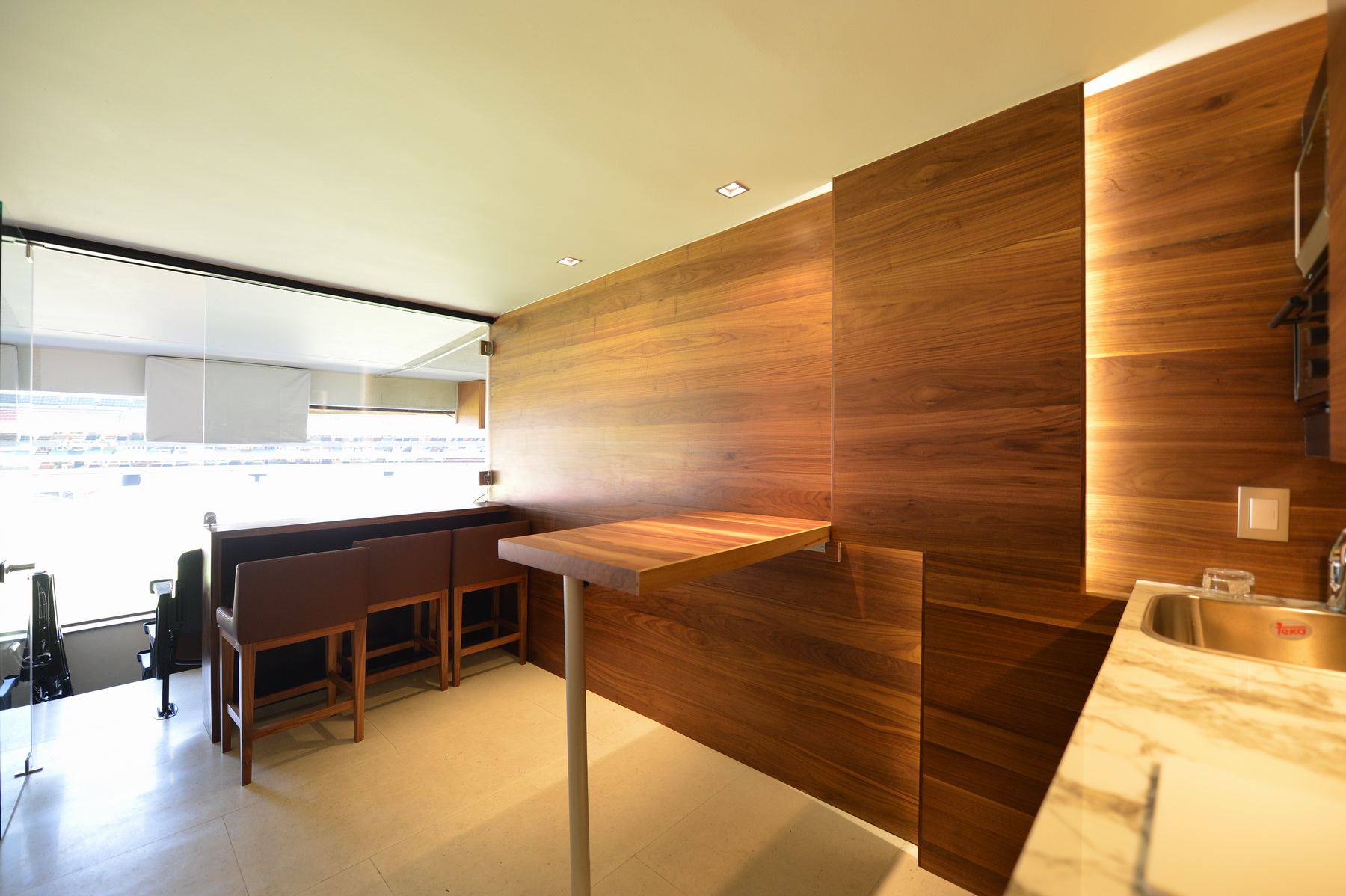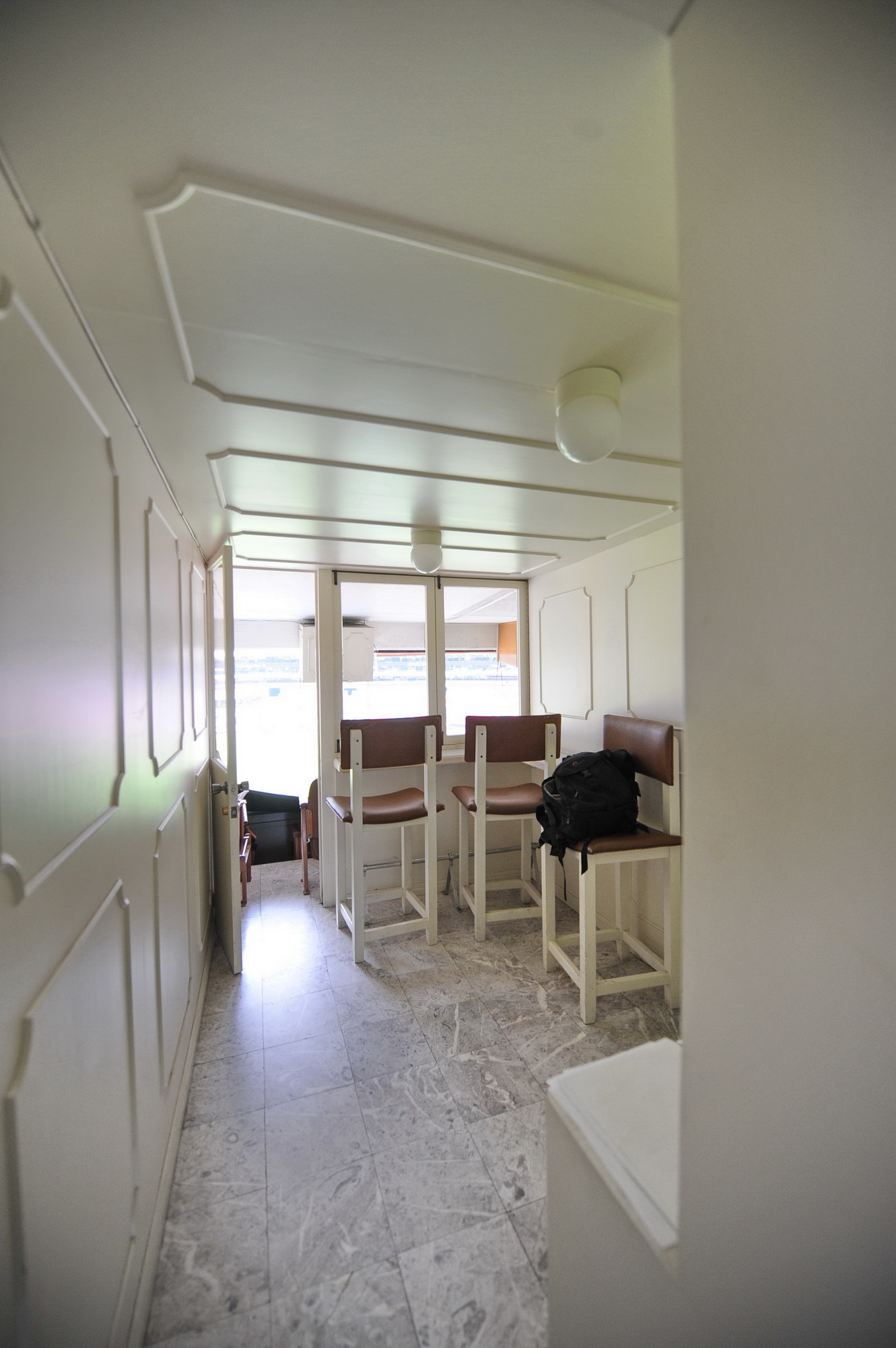 Palco muy estrecho. El objetivo era maximizar el espacio quitando los recubrimientos anteriores y muros anteriores supliéndolos con materiales mas resistentes pero delgados para tener el máximo ocupado por usuarios y no por construcciones.