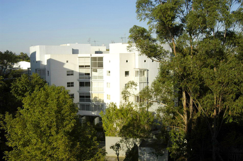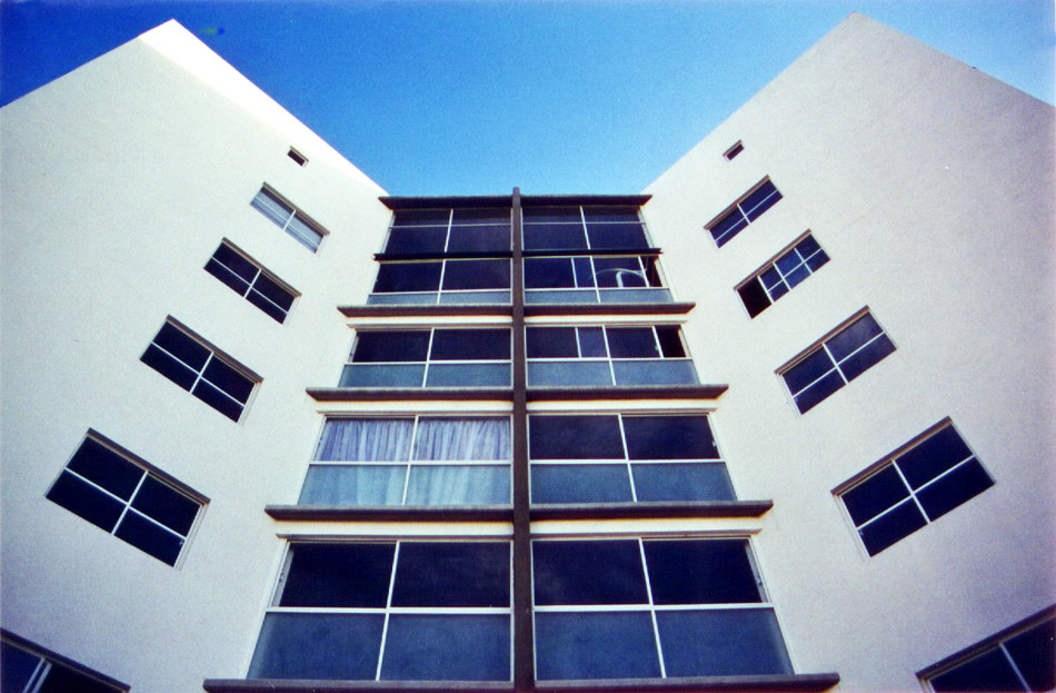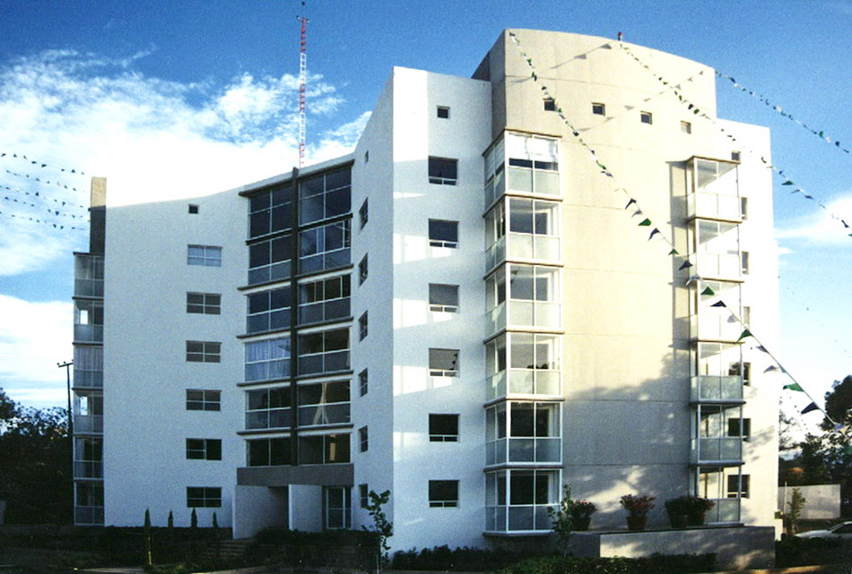 4 edificios de 48 departamentos de 105m2 en 6 niveles. El objetivo fue tener el mismo numero de departamentos con menos edificios para tener mas áreas libres y mas distancia entre edificios. Para lograr esto, los edificios cuentan con 8 departamentos por planta.